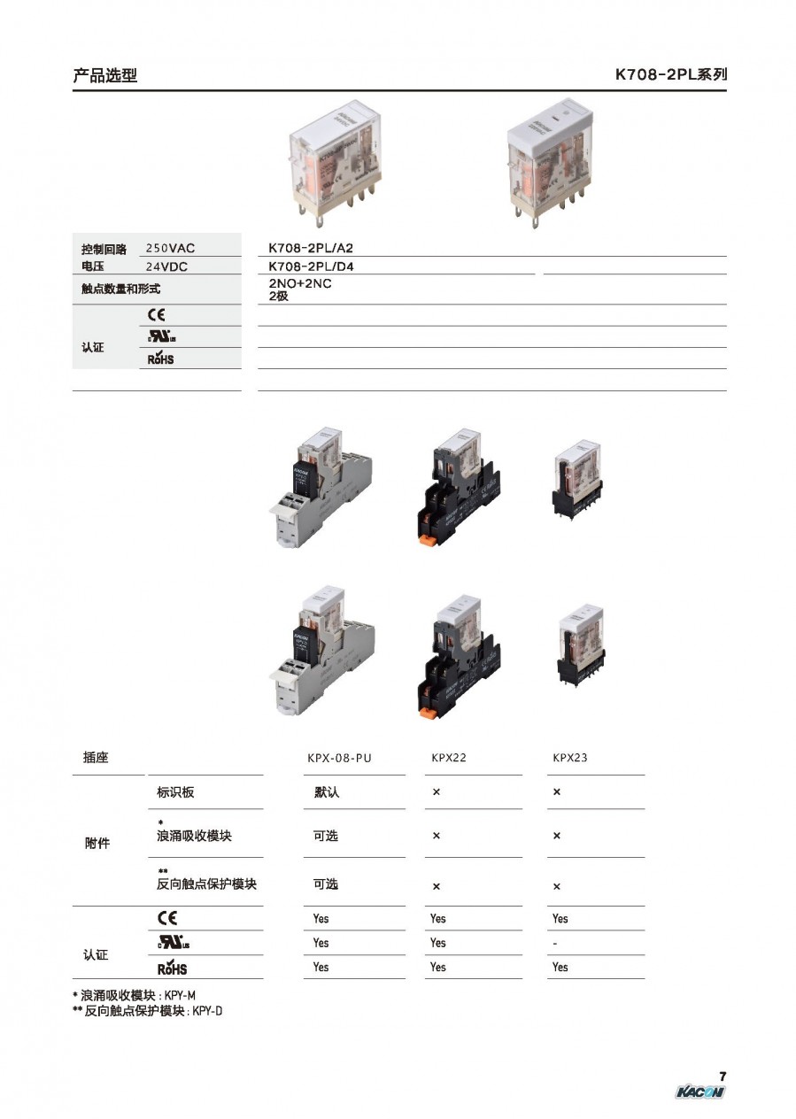 K708-2PL/DC24V 通用继电器