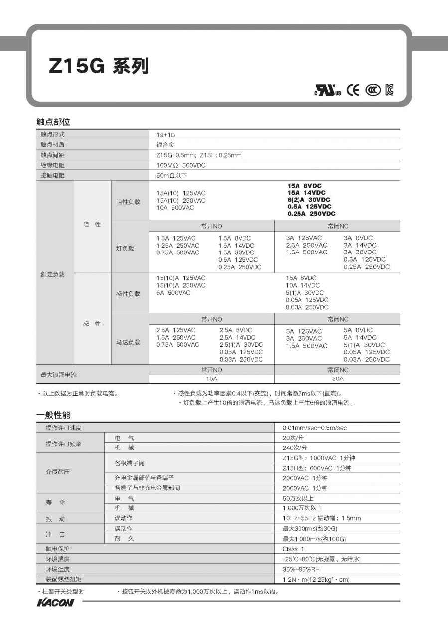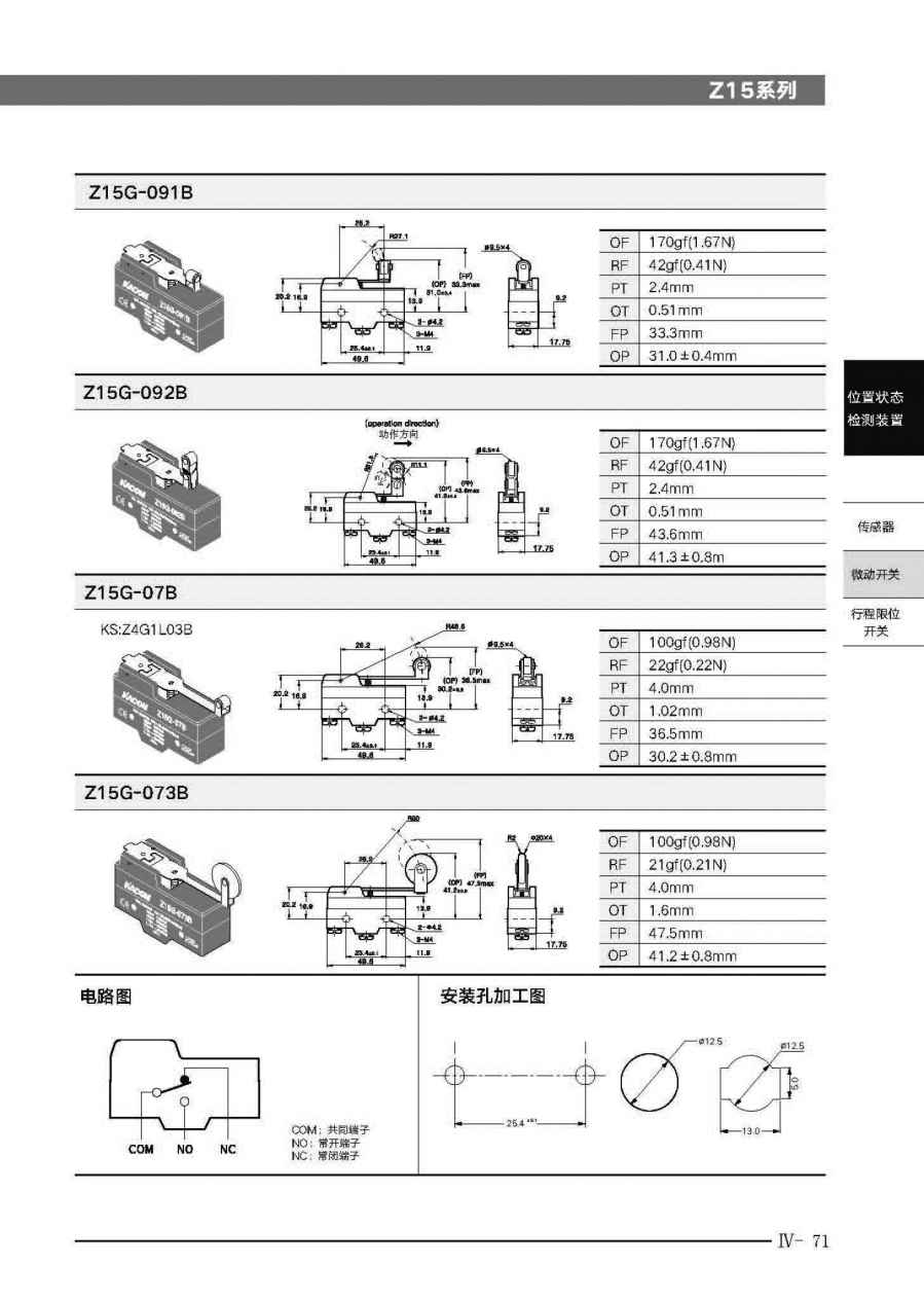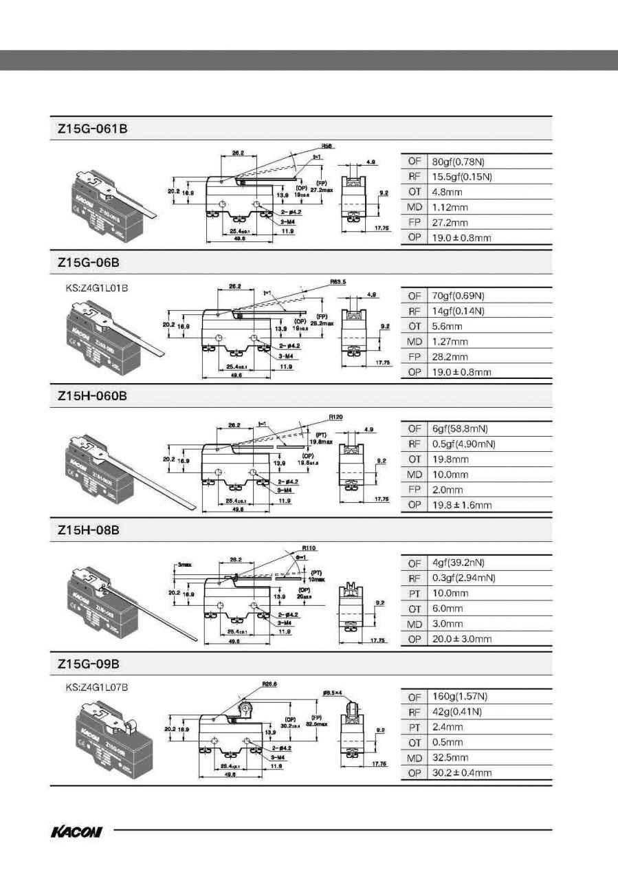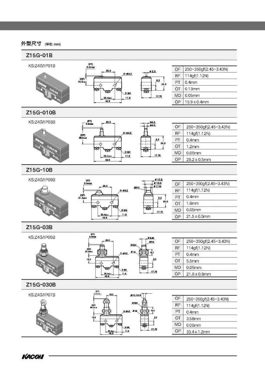 微动开关Z15G/Z15H